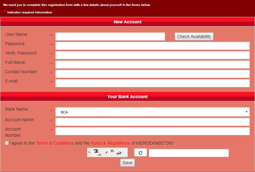 Cara Daftar Judi Roulette Online di Merdekabet365 sangatlah mudah dan gampang. Namun sebelum anda melakukan pendaftaran akun casino roulette online. Persiapkan dulu sebuah nomor rekening bank lokal di Indonesia seperti Bank BCA, BRI, BNI, Mandiri, CIMB Niaga atau Bank Danamon.